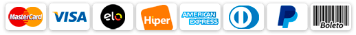 Você tem as opções de pagamento via cartões de crédito, boleto, PIX ou paypal.